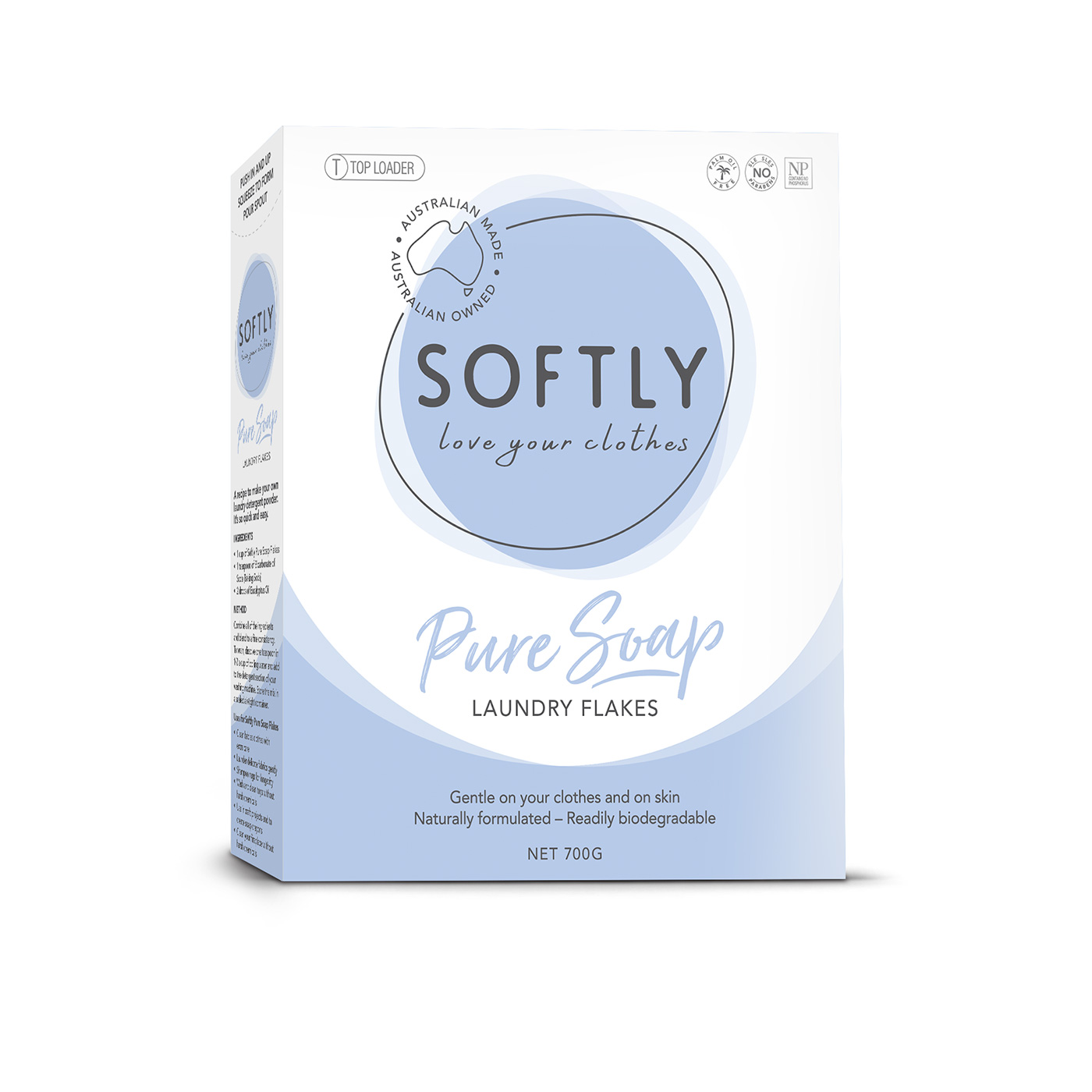 Hand Washing: (for washable silk, lace and lingerie and delicate items) 1/3 – 1/2 cup Always follow washing instructions on the garment. – Thoroughly dissolve Softly Pure Soap Flakes in hot water, then add cold water to bring down to the required temperature, preferably warm, before adding clothes. – Squeeze suds gently through clothing, avoiding rubbing, wringing and undue agitation when washing fine articles. – Rinse thoroughly in warm water. – Remove excess moisture. Do not tumble dry. Dry away from direct heat and sunlight to prevent yellowing of fabrics. – Note: Silk should be dry cleaned unless the label specifies that it is washable. Machine Washing: (suitable for top loading machines) 1 – 1/2 cups Always follow washing instructions on the garment. – Thoroughly dissolve Softly Pure Soap Flakes in hot water, before adding to the machine. Not recommended for front loading, high efficiency machines. Washing Cloth Nappies: – Rinse first to remove excess soiling. – Soak nappies in cold water using a sanitiser if required. – Machine wash in hot water with Softly Pure Soap Flakes. – Rinse thoroughly. Other Washable Items (instructions for washing feather down, continental quilts, parkas and sleeping bags) Always follow washing instructions on product label. We recommend washing woolens in Softly Wool Mix. – Dissolve 1 1/2 cups of Softly Pure Soap Flakes in boiling water and add to a bath 14/3 full of water. – Immerse item and soak for 15-30 minutes. – Rub stains with Sunlight/Velvet Laundry Bar Soap. – Squeeze out excess water and place into a basket lined with plastic and carry to washing machine. – Place evenly around the bowl and spin on normal cycle. – Shake well and dry over 2-3 lines on a clothes line; turn and shake frequently. – To avoid feather down drying in clumps, complete drying in a tumble dryer. If necessary, dry larger items at a laundromat.